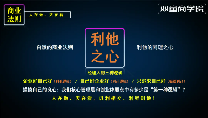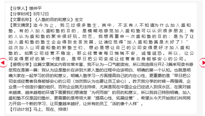至于品德,只有長期的考驗才能被檢驗,所以需要通過價值觀引導(dǎo)和制度約束來加以修正。這也是雙童“回歸”盛和塾的意義所在!最后,他在發(fā)言中振臂高呼,鼓舞號召大家從今天開始放下自己,放下過往,從“新”開始,追隨塾長!