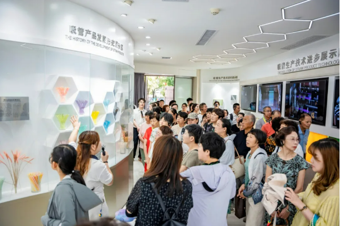 在專業(yè)講解員的陪同下,游學(xué)團參觀了中國吸管博物館。這個獨具匠心的展館不僅系統(tǒng)展示了吸管行業(yè)的發(fā)展歷程,更陳列著各式創(chuàng)意十足、色彩斑斕的吸管展品,令在場游學(xué)團成員連連稱奇。