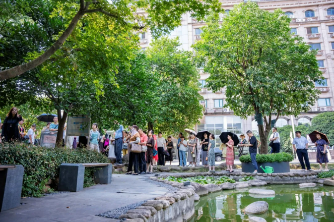 走出建筑大樓,講解員又帶領(lǐng)大家詳細參觀了雙童建于20多年前的“節(jié)能降耗系統(tǒng)”,包含了雨水收集回用系統(tǒng)、廢水處理回用系統(tǒng)、設(shè)備余熱采集循環(huán)系統(tǒng)等,以及使用性與觀賞性完美統(tǒng)一的“雙童湖”和“一號樹”,微風(fēng)拂過,帶來陣陣荷香。