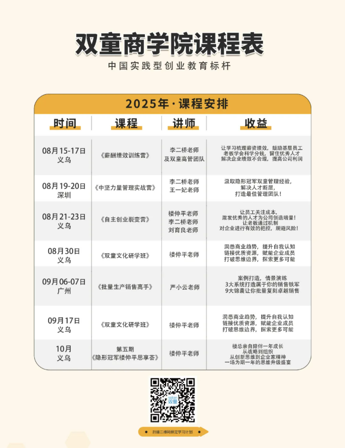 如果你也對“雙童”充滿好奇,也想賦能團隊共同成長,歡迎走進8月30日【雙童文化研學(xué)班】,與上百位優(yōu)秀的創(chuàng)業(yè)者一起學(xué)習(xí)!少量名額,歡迎咨詢鎖定!