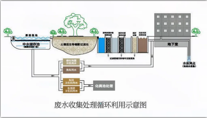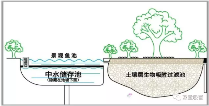 從結(jié)構(gòu)上看,該景觀池采用分層式設(shè)計(jì):上層為1米多深的生態(tài)觀賞區(qū),供人觀賞與休憩;下層則是深達(dá)4.5米的中水儲水池,承擔(dān)著廢水儲存與再利用的重任,默默履行著水循環(huán)利用的重要使命。這種創(chuàng)新的雙層結(jié)構(gòu),既確保了景觀效果,又實(shí)現(xiàn)了水資源的最大化利用。