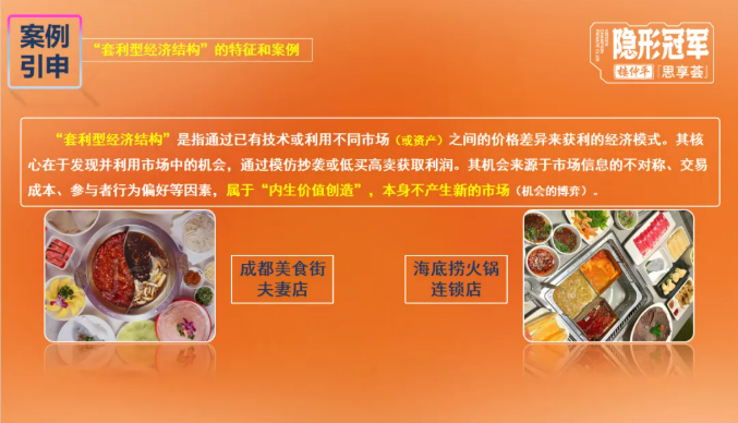 “套利型經濟結構”指通過模仿、利用市場信息差獲利,比如成都街頭的夫妻火鍋店,僅是瓜分既有市場,不創(chuàng)造新需求;而海底撈則是“創(chuàng)新型經濟結構”,通過模式與服務創(chuàng)新開發(fā)新客群、新場景,創(chuàng)造原本不存在的市場。