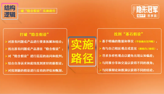 樓老師為大家提供了破除“隱含假設”的具體實施路徑