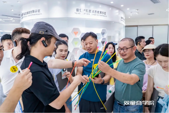 樓老師向?qū)W員們介紹道:面對(duì)當(dāng)下越來(lái)越卷的行業(yè)競(jìng)爭(zhēng),他毅然帶領(lǐng)雙童突破“一根吸管”的局限,突破路徑依賴,打開(kāi)組織邊界,進(jìn)行破界創(chuàng)新,鼓勵(lì)雙童員工拓展“第二曲線”,并在2018年出資為員工搭建了創(chuàng)業(yè)共享平臺(tái),激發(fā)員工積極性,實(shí)現(xiàn)共同富裕!