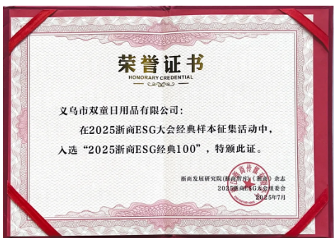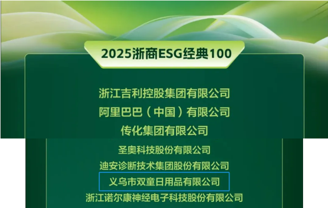 7月30日,2025浙商ESG大會上隆重發(fā)布“2025浙商ESG經(jīng)典100”,其中,雙童再次憑借在ESG領域取得的卓越表現(xiàn)成功入圍!
