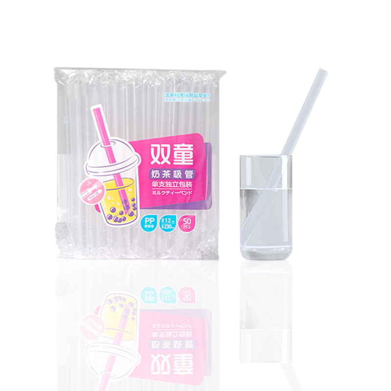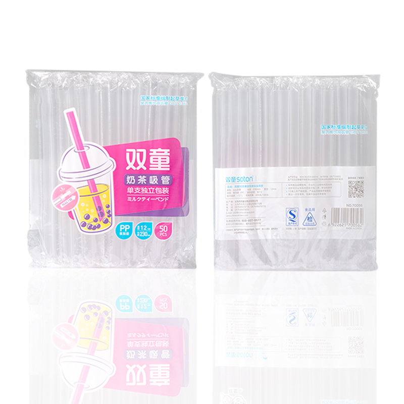 70056雙童100支單支膜包裝透明彩條色珍珠奶茶吸管